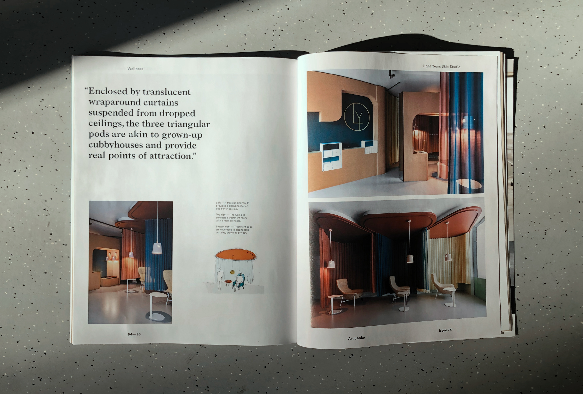 Issue 75 of Artichoke features a collection of projects that feature ambience luminaires. Included are Fox Fit from Mim Design which features Virtuoso from the Symphony range and Light Years Skin Studio by Maher Design which features the track mounted Abaco.