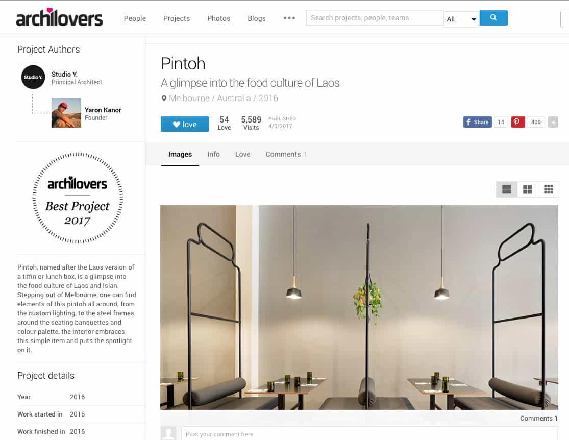 Great to see two projects we collaborated with Studio Y on were named ‘Best Project 2017’ by archilovers.
