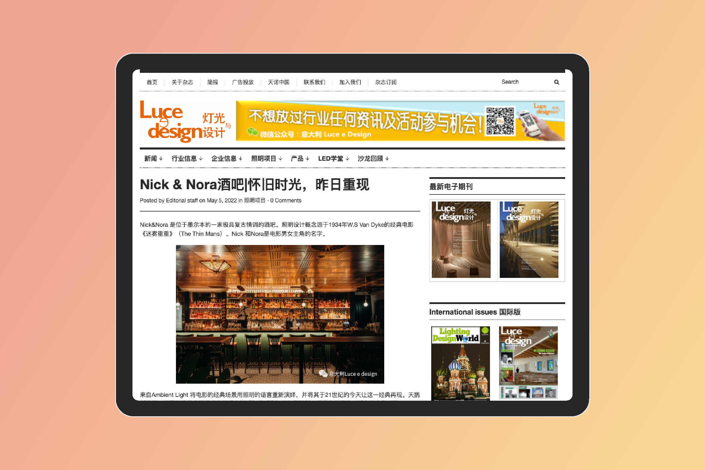 Nick & Nora’s Lighting Showcased In Luce E Design Magazine China