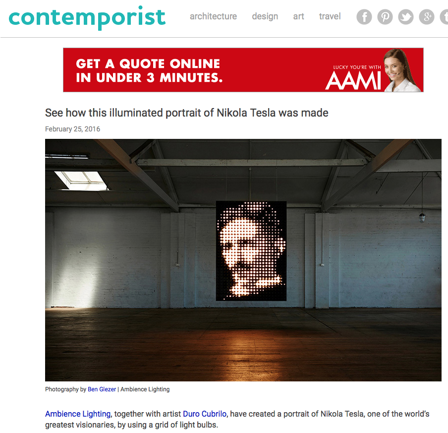 Our art installation – Tesla Electric Portrait – has certainly generated some fantastic press around the world. Here is a selection of some of the media interest it has generated.