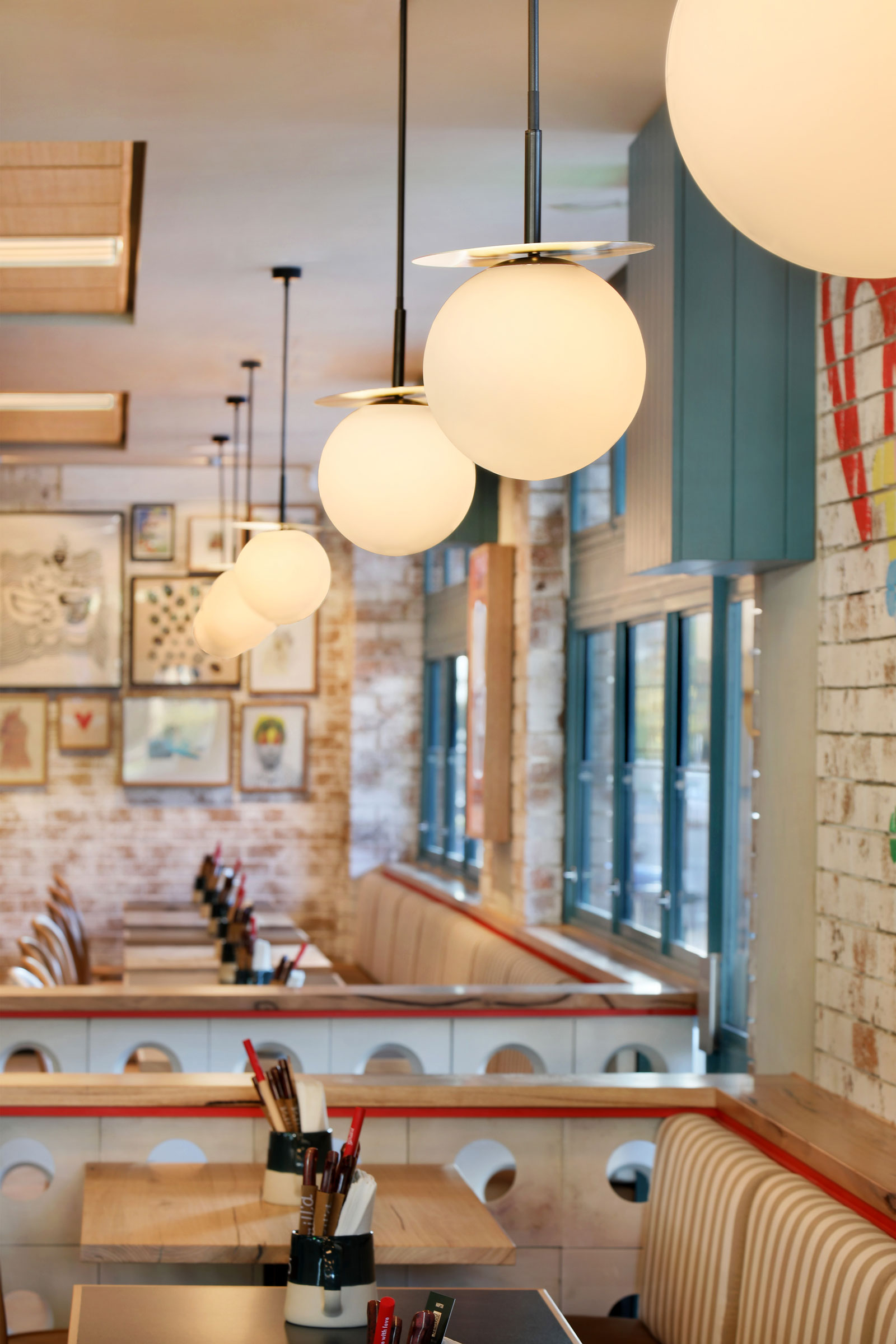We’ve been long-term partners with the team at Grill’d. Our latest project saw another mix of custom and contemporary luminaires. The projects always call for an equal mix of creative and task-based lighting. The interior by Studio Y. also features a swathe of original artwork and considered design.