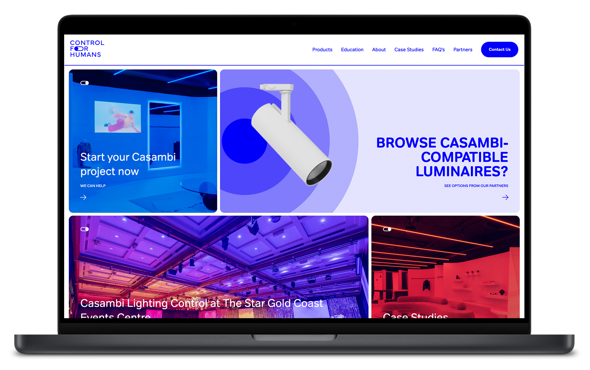 “Get Casambi products, level-up your Casambi skills, explore the potential for your projects or just keep up to date of the fast-evolving technology. This truly is a world-first Casambi resource. It’s a very exciting time.”