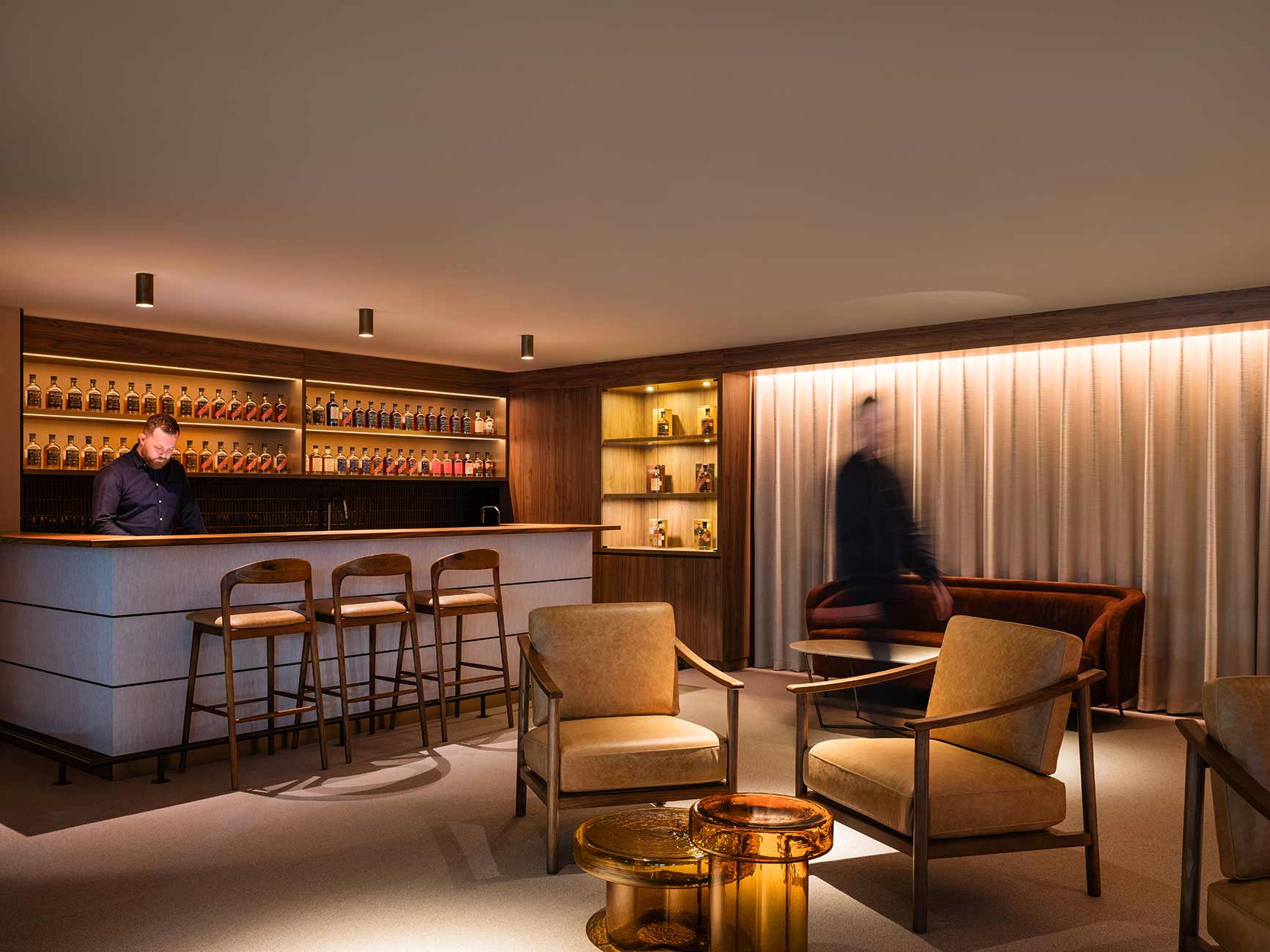 A project illumination highlight includes the colour changing lighting scheme with stretched fabric x Casambi. We used luminaires across the local brands andro and Symphony Lighting rqnges, and also the Australian-made Heide.