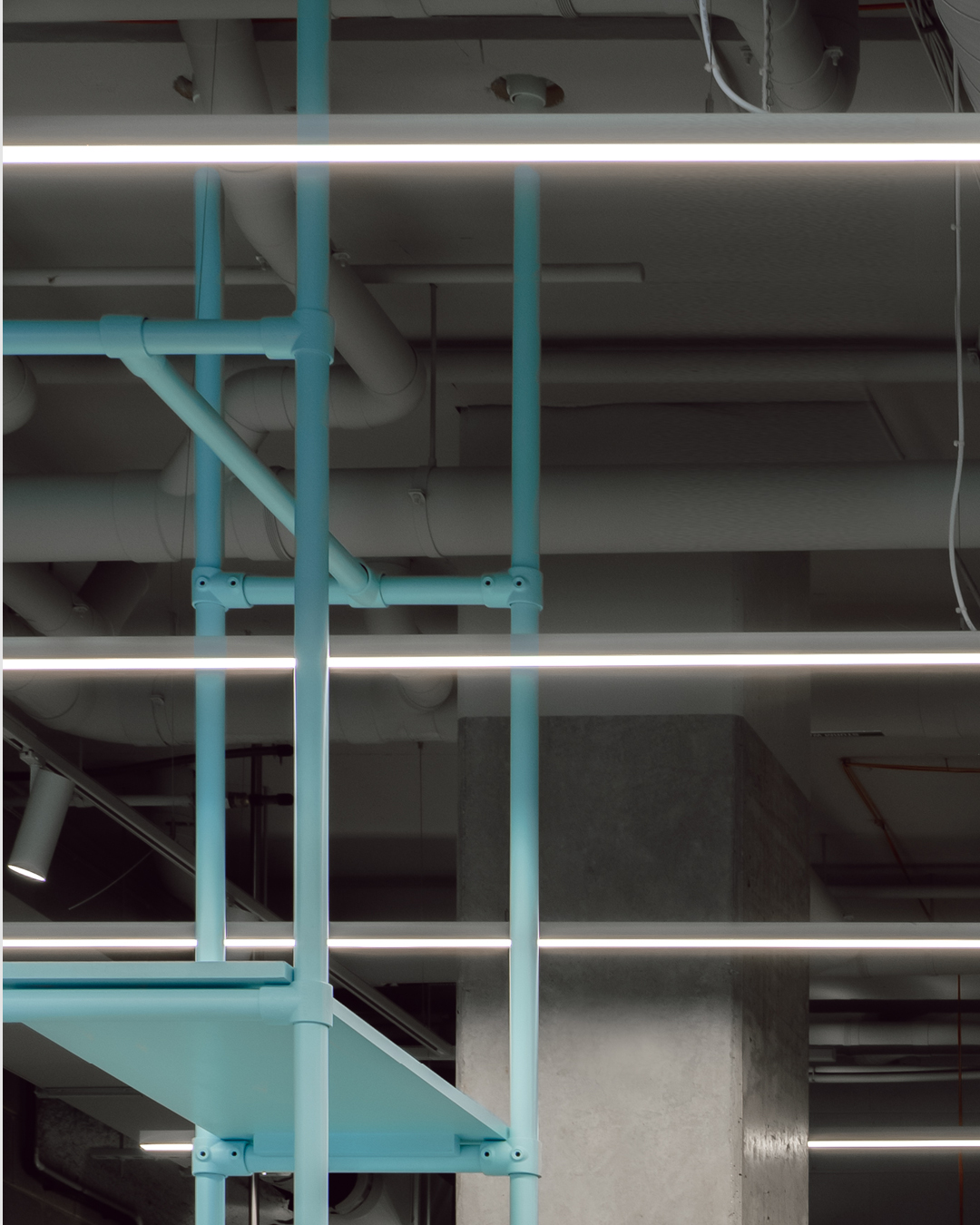 Metal meets concrete in a perfect marriage with the luminaires chosen – Decibel linear lighting from the Symphony range and customised andro tracklights.