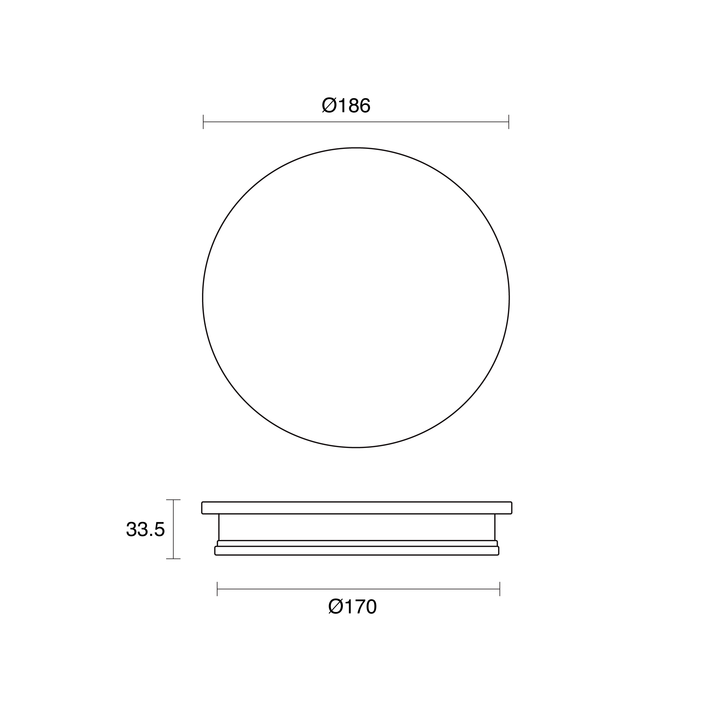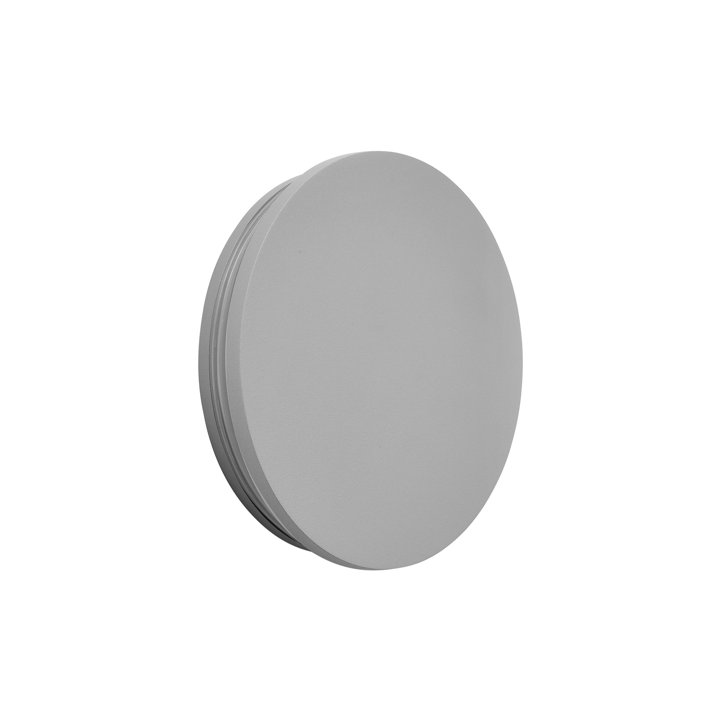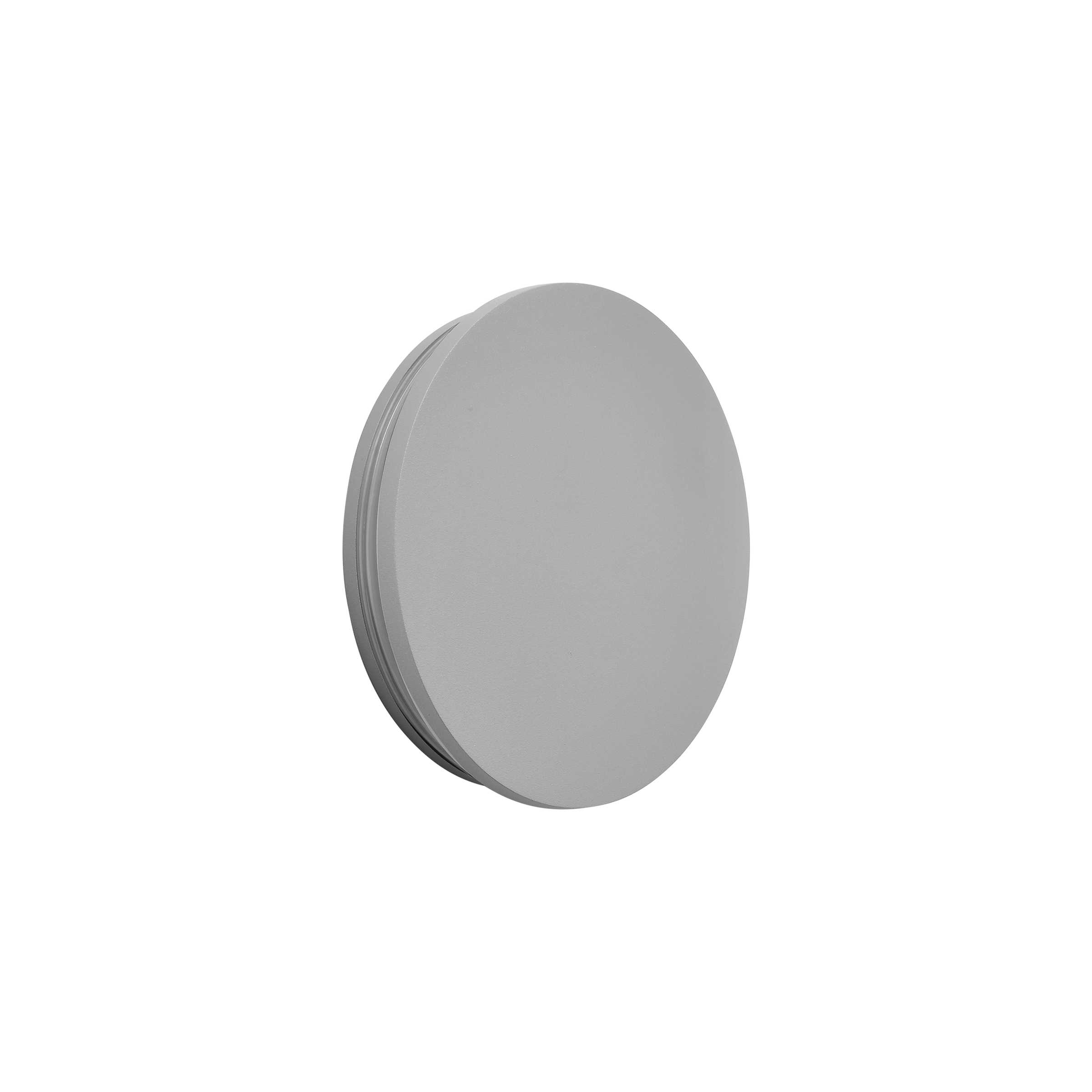 A round wall surface-mounted luminaire creating a diffused and discrete light through the fixture perimeter on the wall. Fixture for outdoor installation on a wall. Phospho-chromatised and polyester powder coated die-cast copper-free aluminium body, frosted polycarbonate diffuser, moulded silicone gasket and stainless steel screws. Built-in LED driver 220-240V 50-60Hz, with low-power CREE LED. IP65 rating.