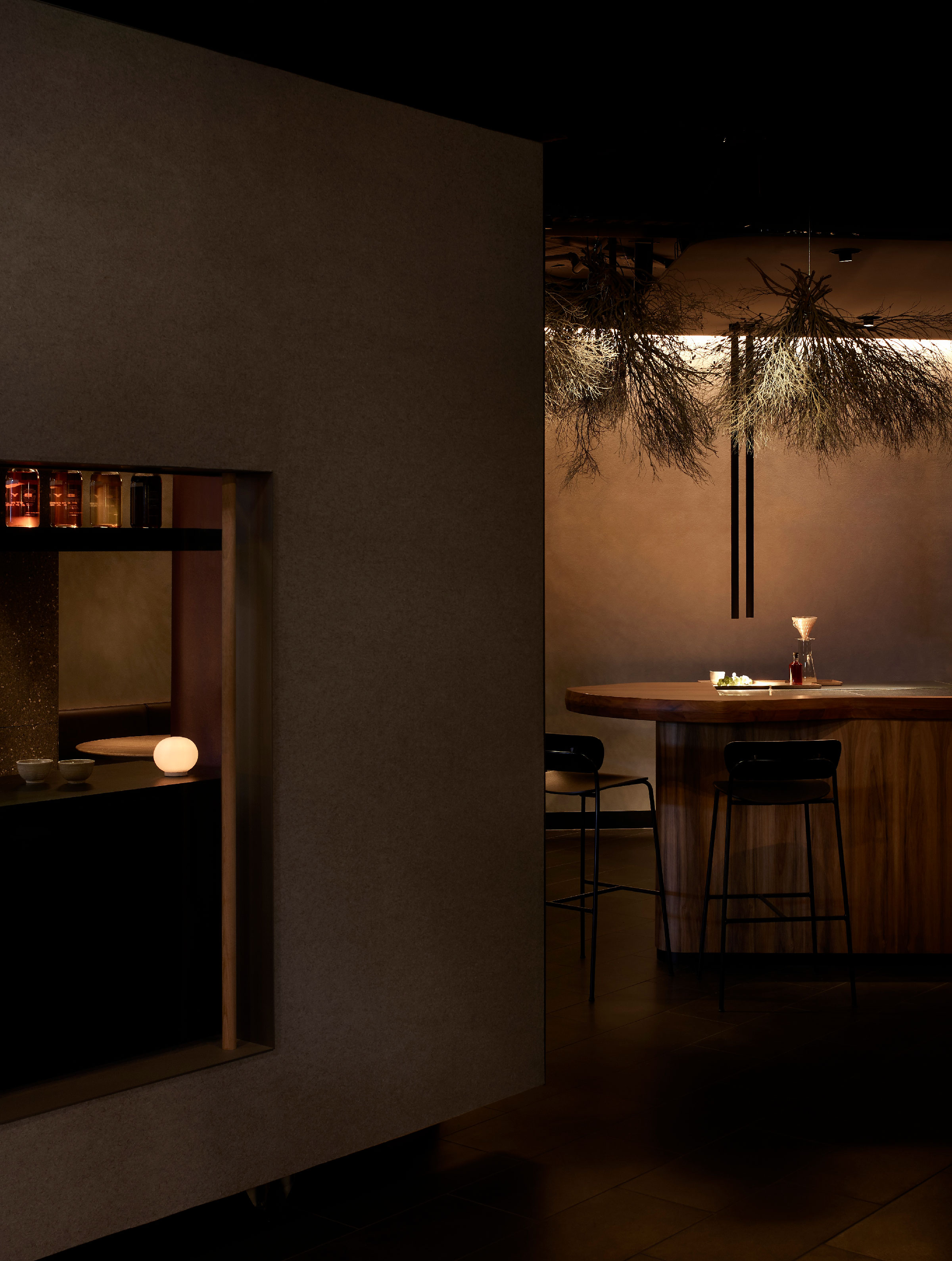 Gentle illumination grazes the carefully considered interior layers and textures creating a sensual space grounded in Australian heritage.