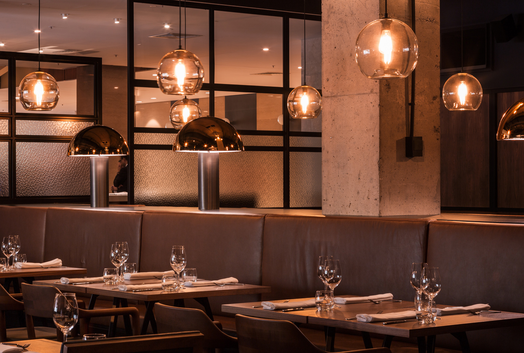 Main features include the custom wall lights, such as the ‘Uplight’ in the lobby area and the ‘UpDown’ in the Brassiere area. For the stand-out centrepiece feature, ambience partnered with Copper ID to realise Landini’s vision for this showcase area. The design needed to incorporate the elements of the existing feature pendant within the lobby lounge