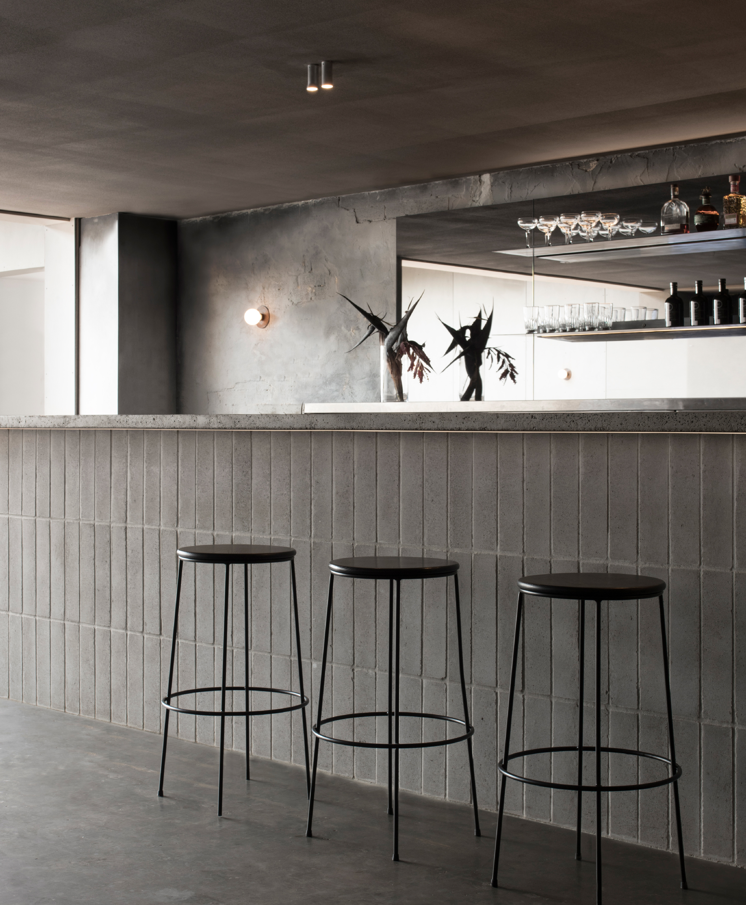 Highlights include the custom sconce by ambience + Jan Flook made with Japanese hot wax steel. These amazing-sounding fixtures are complimented with a cute-as-a-button baby version. Custom-made Heide can lights in raw galvanised steel with lightly washed Piccolo by Symphony combine to create a subtle and sophisticated tone at the bar, Yellow Trace describes it as