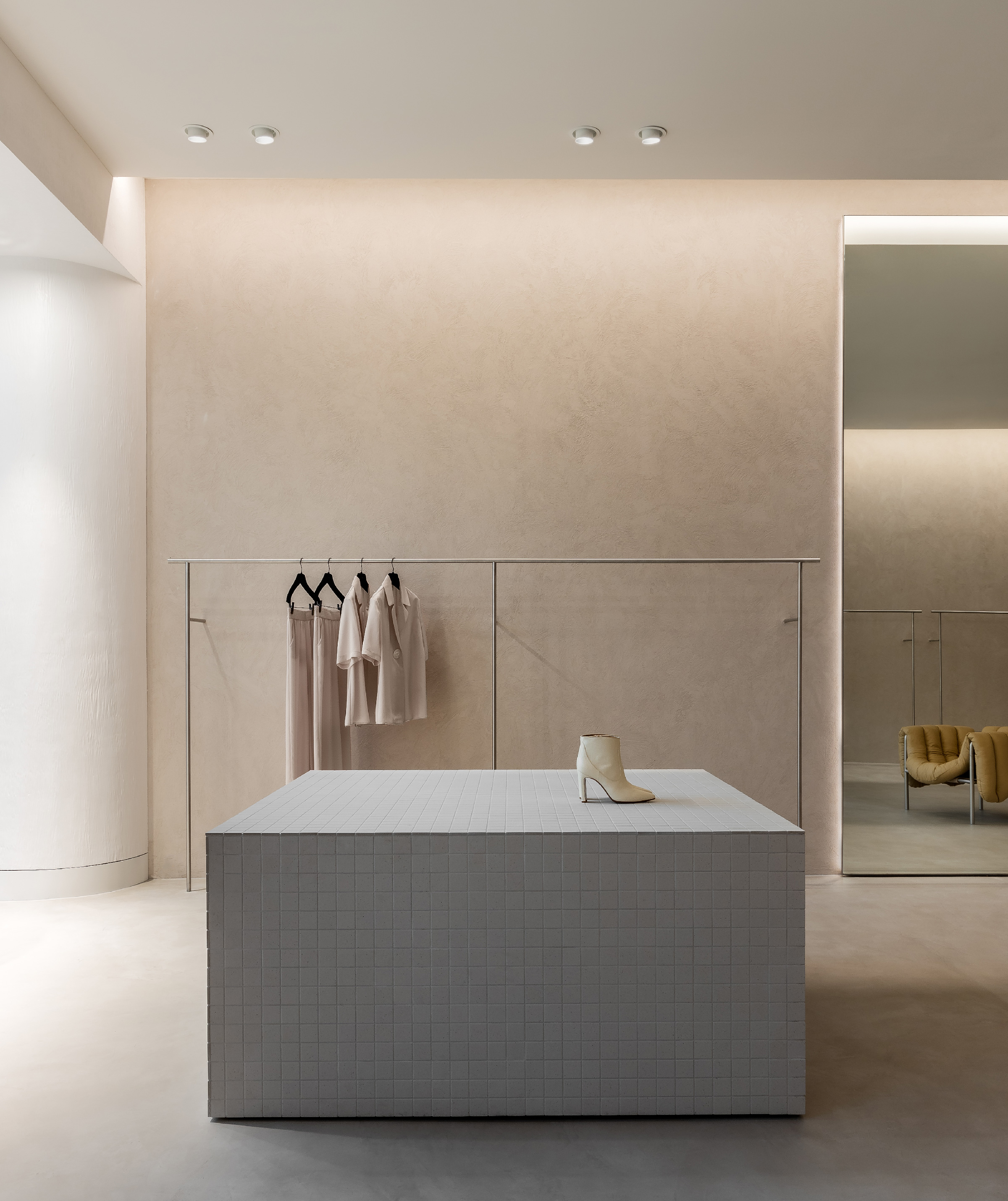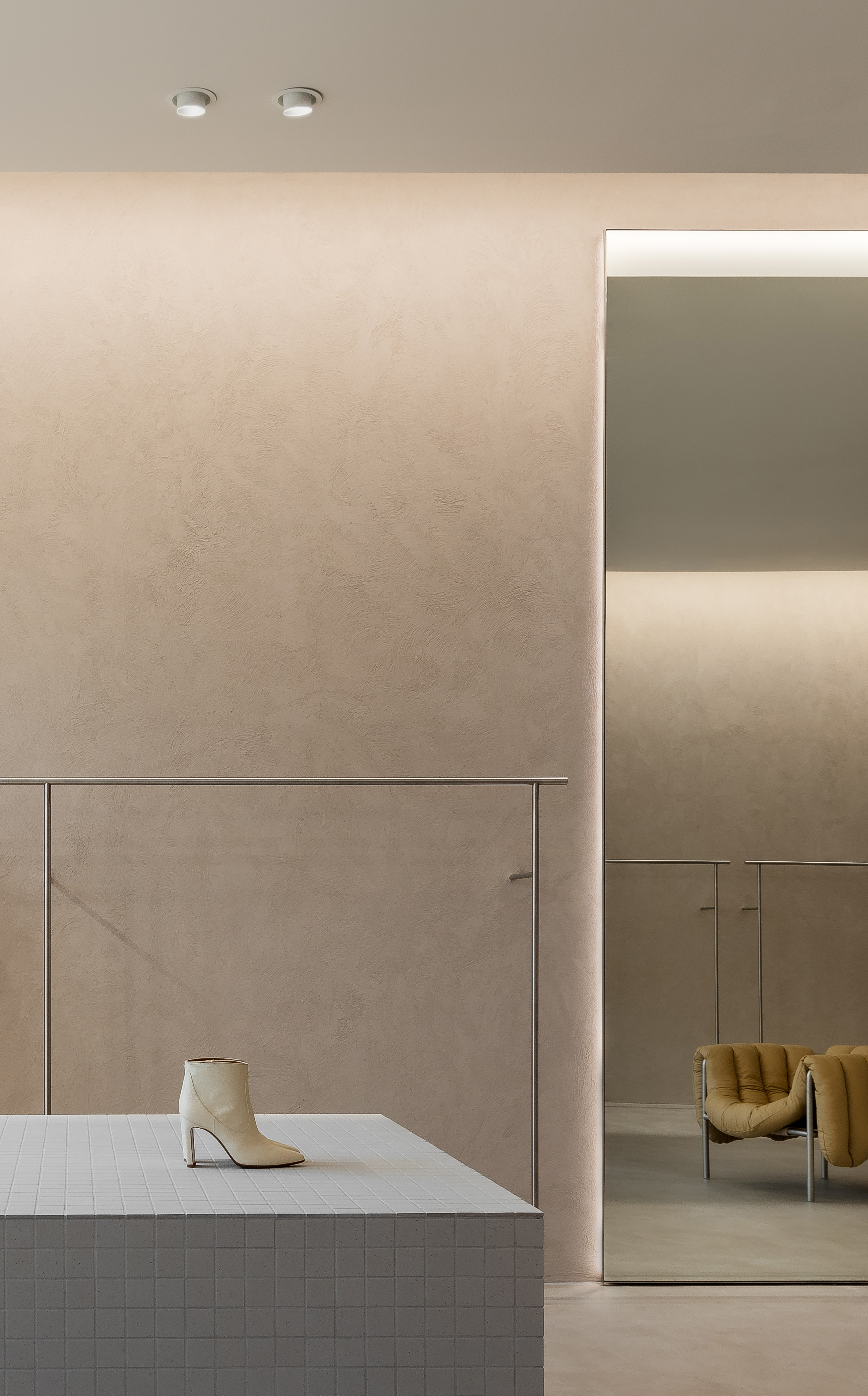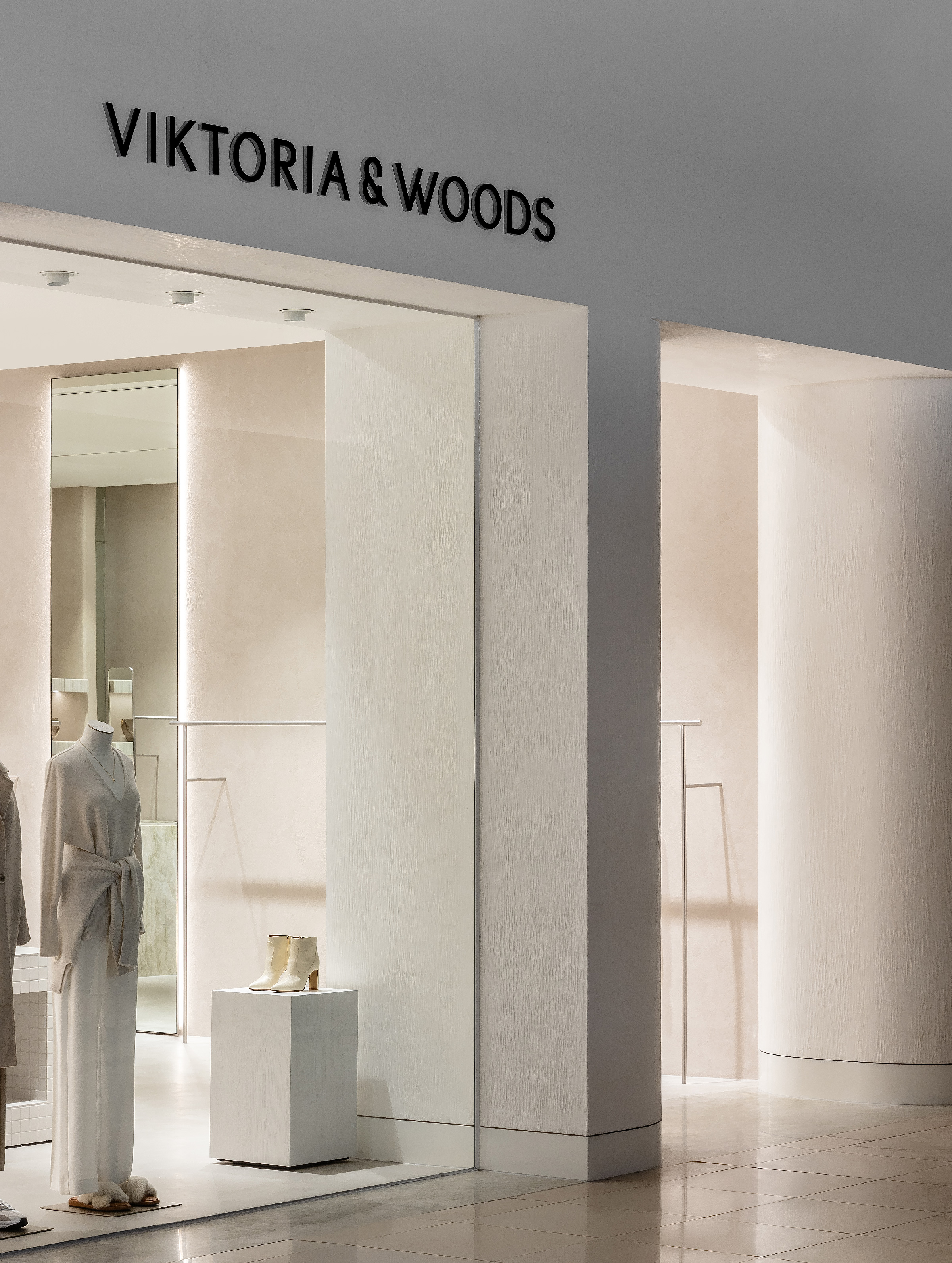 Lighting was meticulously planned and ranged, from drawing foot traffic into the shop to creating a harmonious shopping experience and paying homage to the minimalist interior.