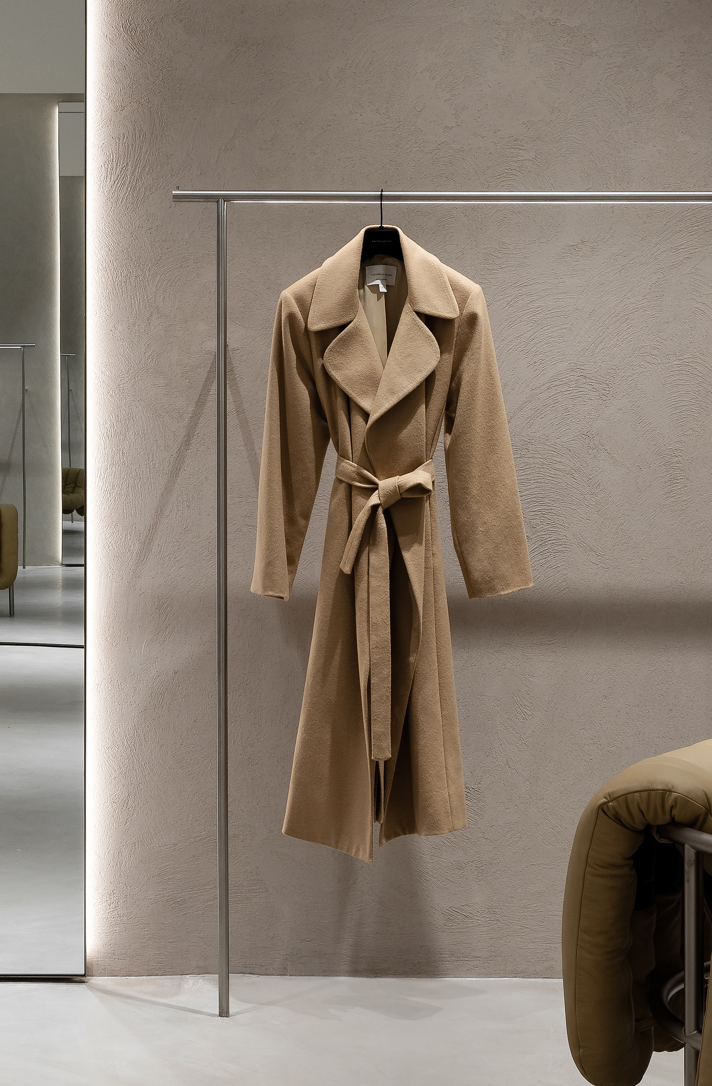 A combination of the permitter lighting gently illuminating the racks (with tailored illumination inserted from our Symphony range) and mini trim recessed downlights resulted in a gallery look and feel where customer can admire the garments for prolonged periods of time.