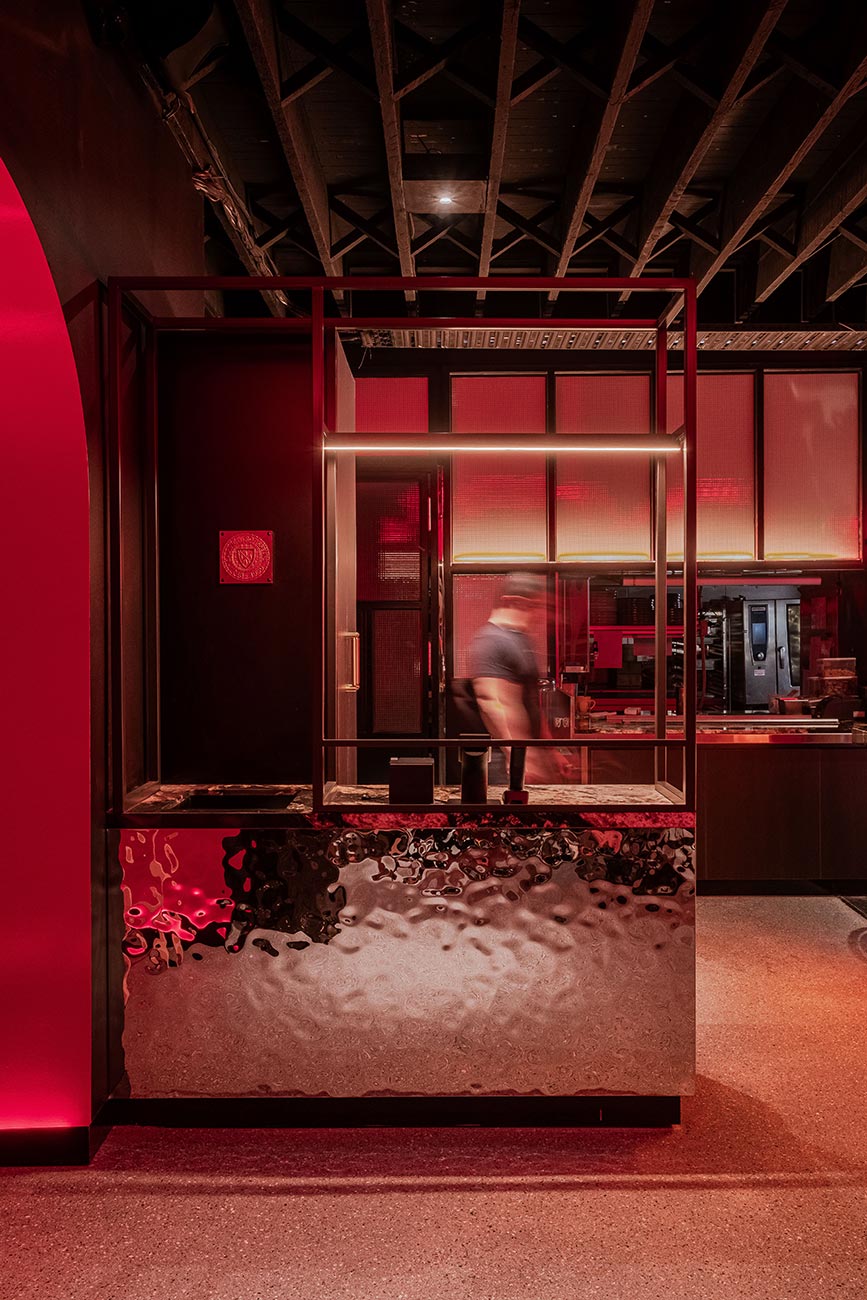 Overall lighting complements the finishes, with varying strategies and different lighting levels for the areas within the space. In the bar its brighter, seating its dim. Contrast works its socks off. And the playfulness is not only an ide to the brand but Melbourne meets Asia aesthetic. The result is an enchanting space that cradles the intersection of being inspired by the city and cultures from which it grew, but is also feels refreshingly new.
